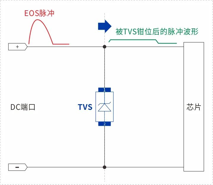 我們試著把這個問題解答清楚。首先,要理解什么是正向EOS、負向EOS,如上圖一,正向EOS是EOS電流從電路正極流向負極,但TVS遭受反向(N到P)的EOS沖擊,負向EOS是EOS電流從電路的負極流向正極,但TVS遭受正向(P到N)的EOS沖擊。