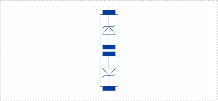 上面兩顆BV-FE05ZA的P極串聯在一起就組成了一顆雙向的TVS,如下圖四,TVS無論遭受正向還是負向的EOS沖擊,電流總會流經一個N到P的反向結,因而鉗位電壓的絕對值也是在8.9V左右。